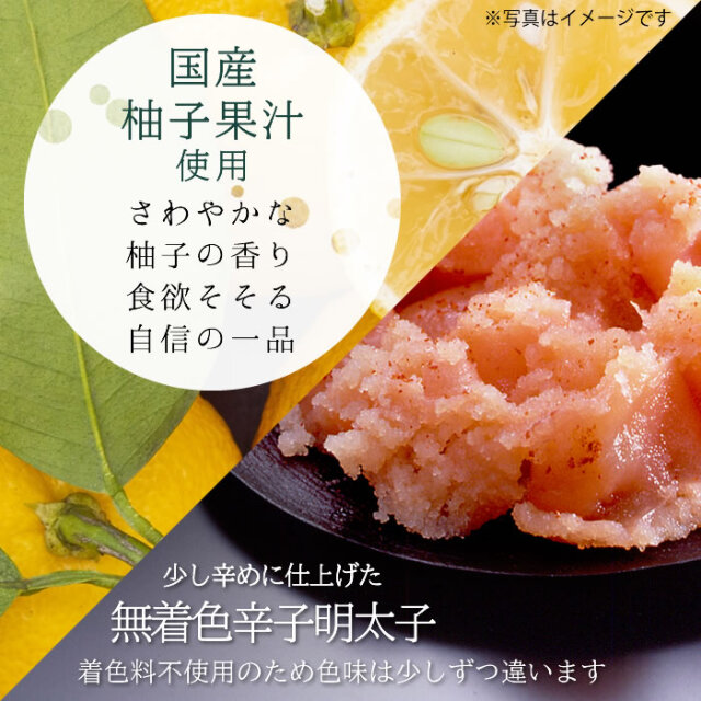 | 原材料 | すけとうだらの卵巣(ロシア又はアメリカ)、発酵調味料、食塩、唐辛子、かつお風味調味料、柚子果汁/調味料(アミノ酸等)、甘味料(ソルビット)、酸化防止剤(ビタミンC)、ナイアシン、酵素、発色剤(亜硝酸Na)、(一部に小麦・大豆を含む) |