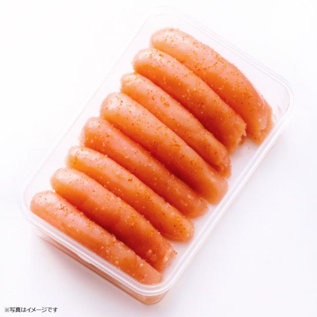 製造過程でほんの少し薄皮が切れただけの辛子明太子を大きさを揃えてお詰めしました。