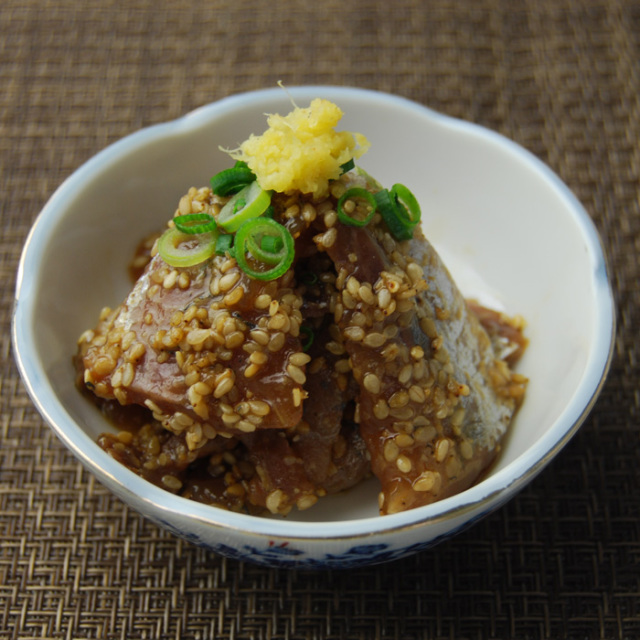 | 原材料名 | 真あじ(長崎県産)、醤油、砂糖、醸造酢、食塩、本みりん、かつお節、さば節、昆布だし、米発酵調味料、魚介エキス、粉末調味料(ごま、砂糖、粉末醤油、その他)、いりごま/酸化防止剤(ビタミンC)、調味料(アミノ酸等)、酒精、カラメル色素、増粘剤(キサンタン)、(一部に小麦・ごま・さば・大豆を含む) |