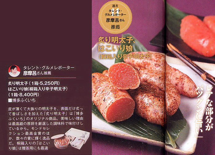 「食楽」2011年3月号にて、彦摩呂さんの推薦で博多ふくいちの炙り辛子明太子・はこいり娘が掲載されました!